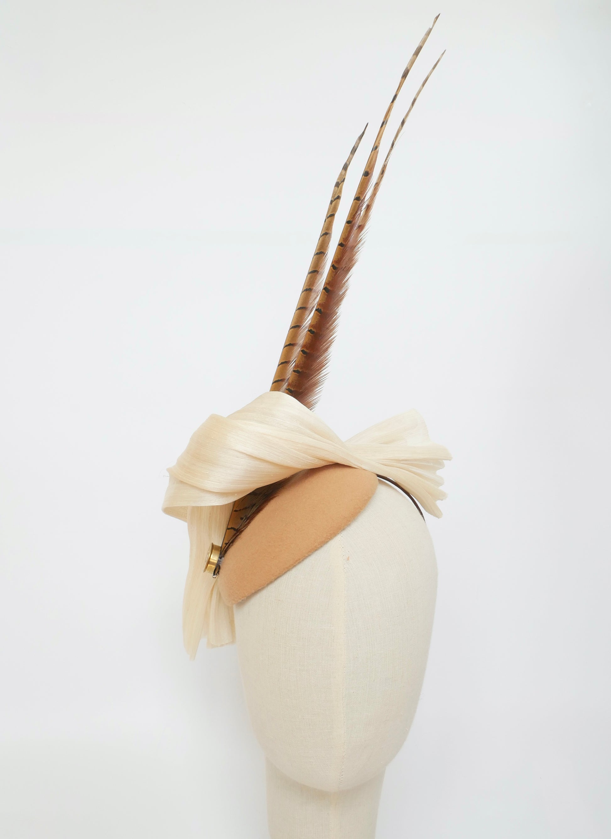 Octavia Fascinator - cream silk and feather